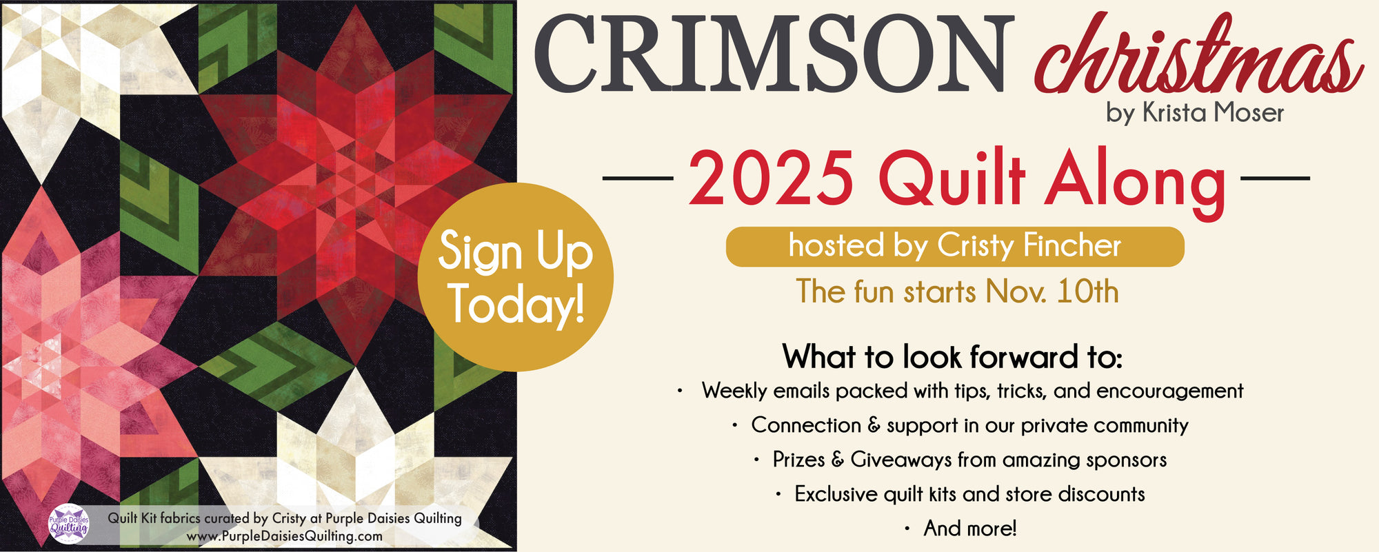 Sign up for email updates to find out about new patterns, quilt kits, quilt alongs, tips/tricks, and on demand courses.