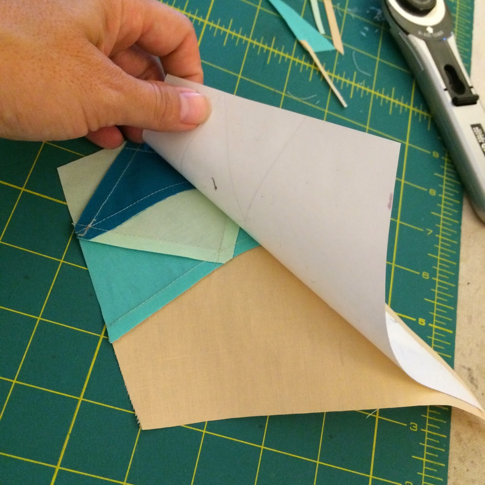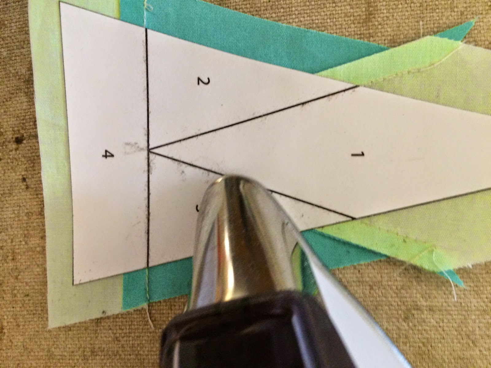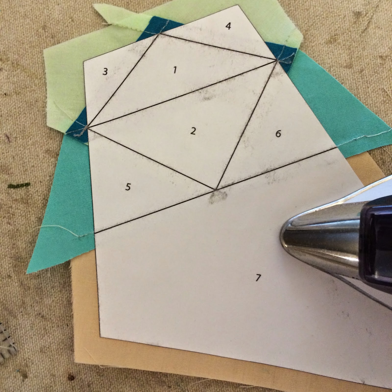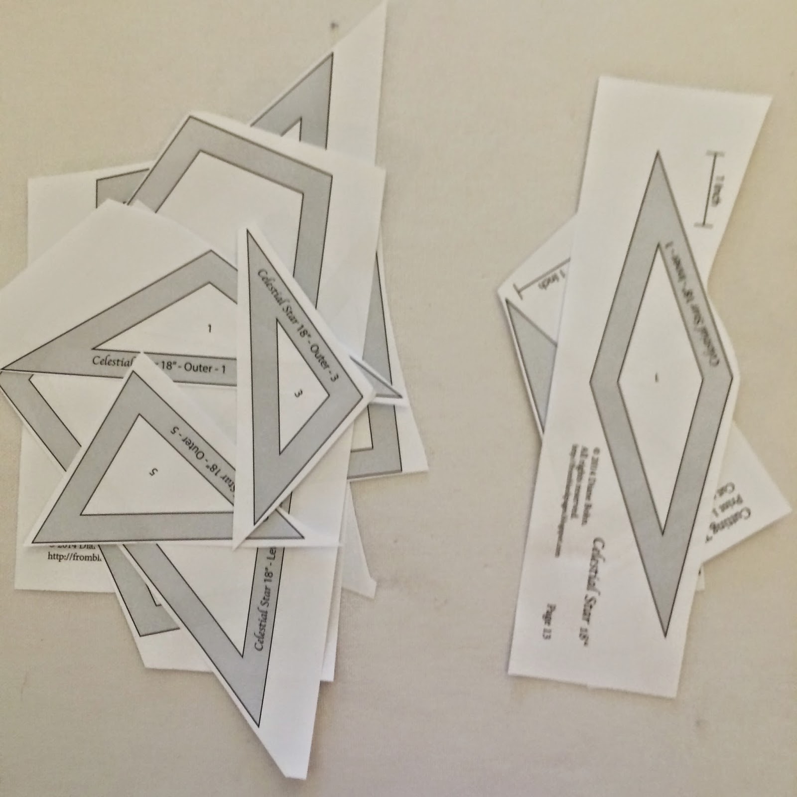 The cutting templates can be cut in any fashion you prefer. Paperless Paper Piecing is very forgiving, and doesn't require extremely precise fabric pieces. Although, I like templates, because they cut down on waste. Take a look at Diane's method; it is wonderful. The only difference for cutting the fabrics for PPP is to cut with the wrong side of the fabric facing up. This is most important if you are using prints and/or cutting rights and lefts.