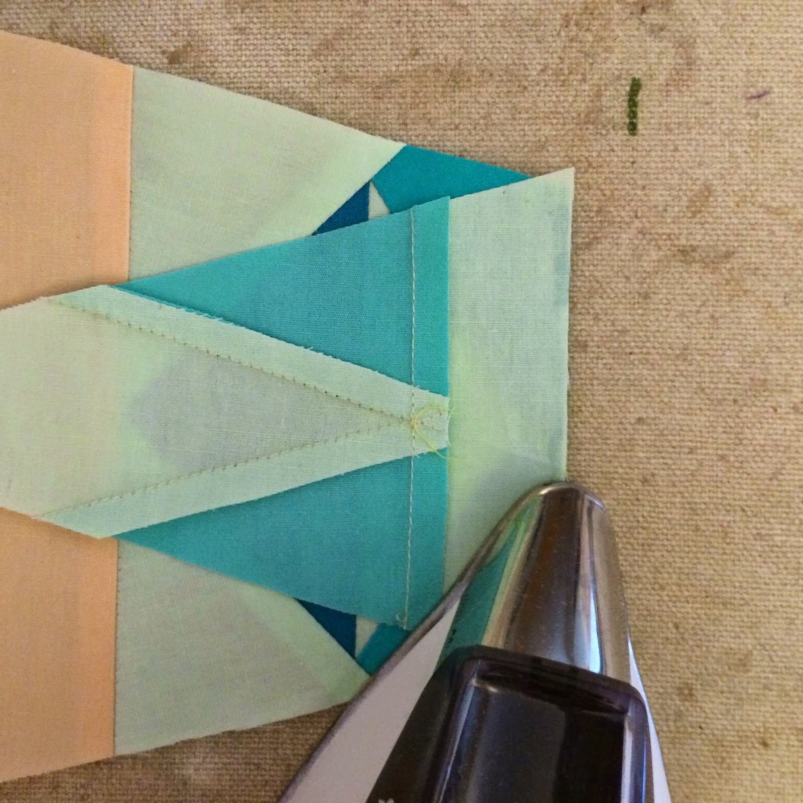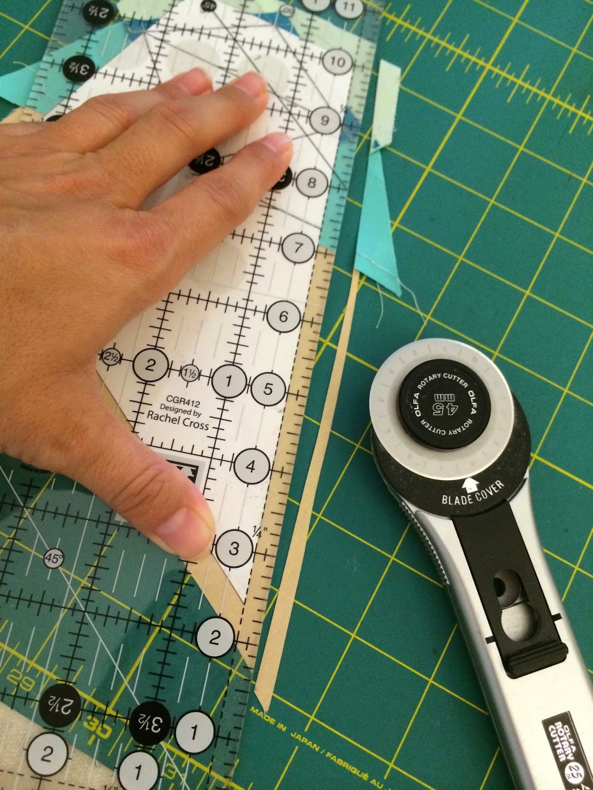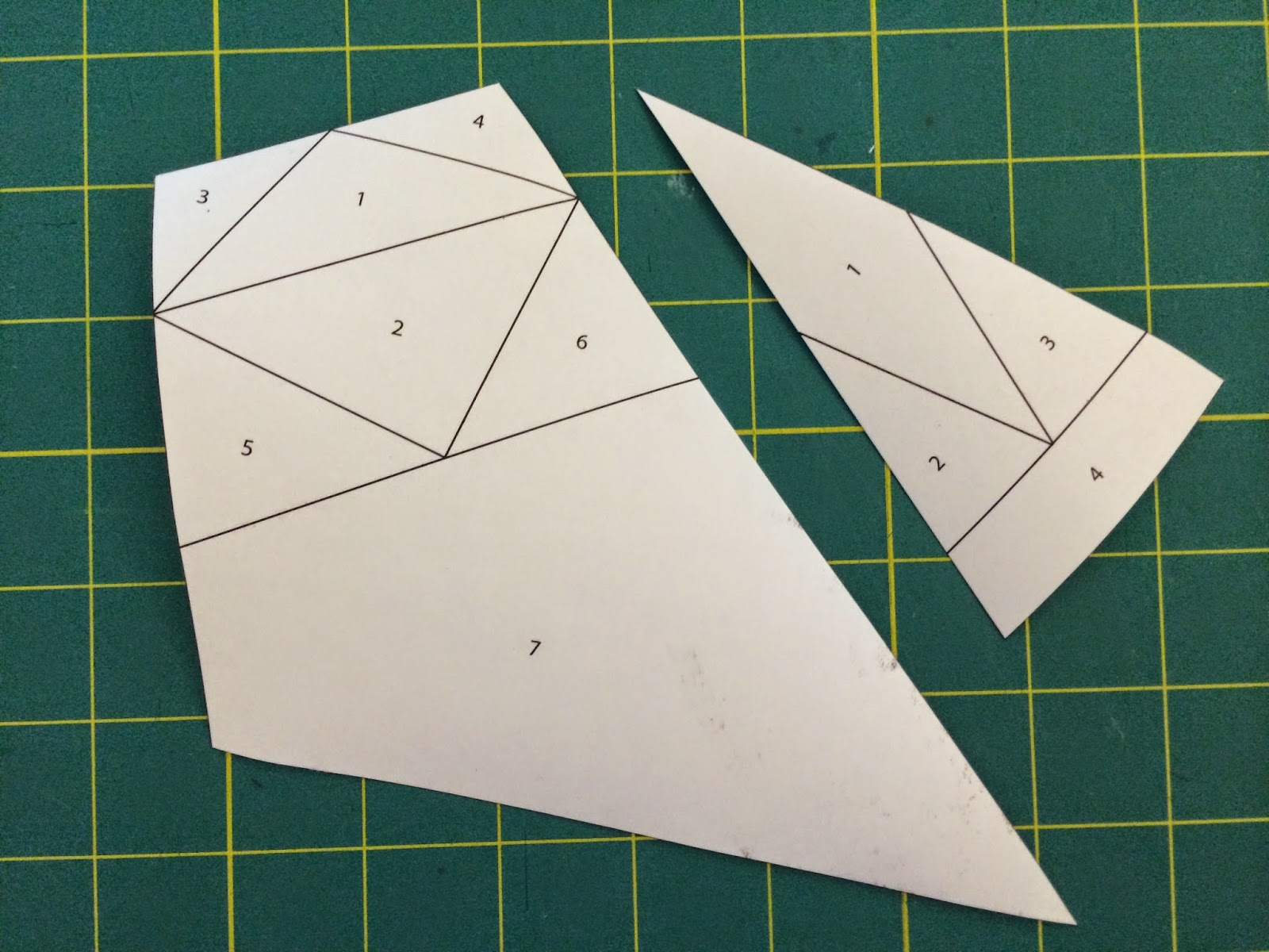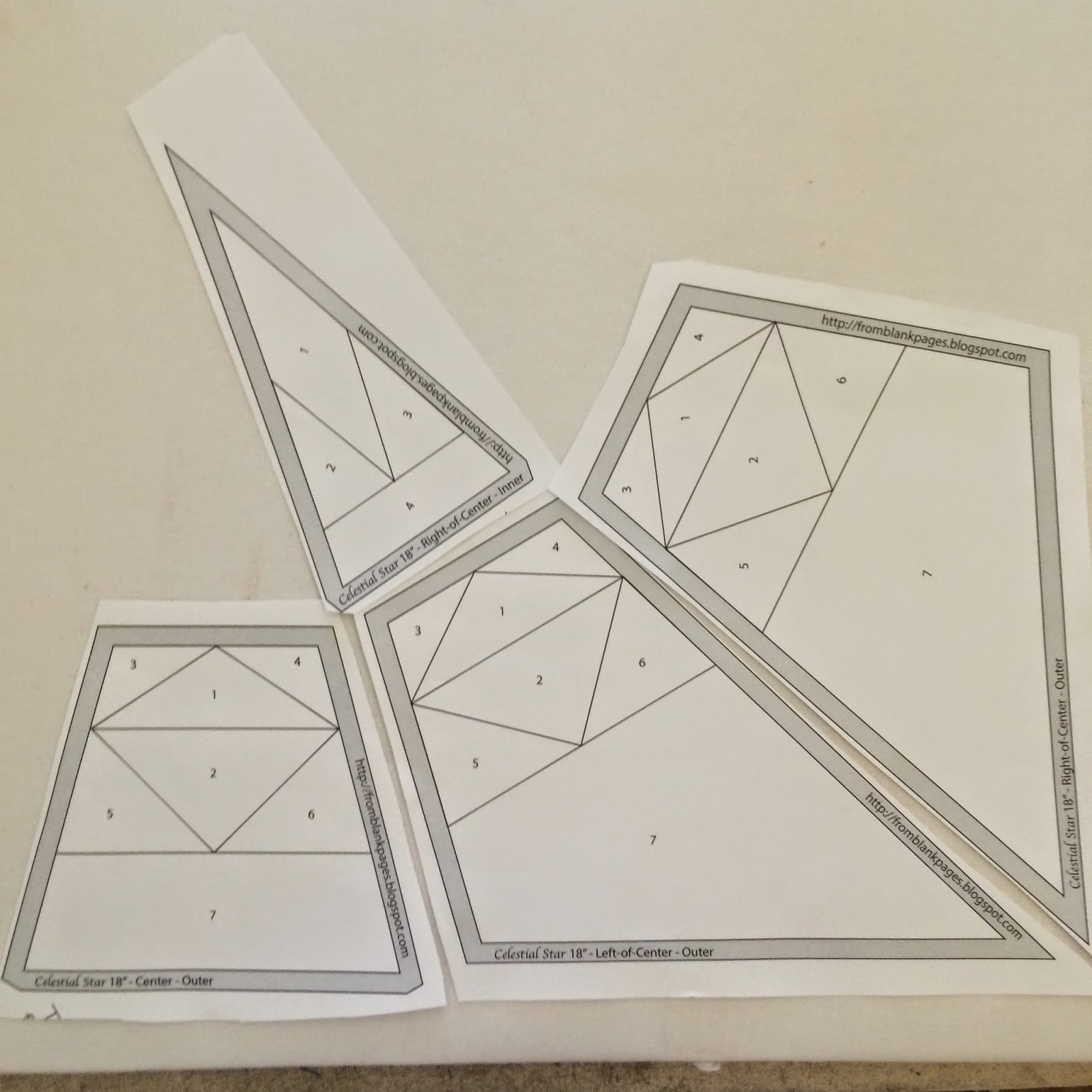 The cutting templates can be cut in any fashion you prefer. Paperless Paper Piecing is very forgiving, and doesn't require extremely precise fabric pieces. Although, I like templates, because they cut down on waste. Take a look at Diane's method; it is wonderful. The only difference for cutting the fabrics for PPP is to cut with the wrong side of the fabric facing up. This is most important if you are using prints and/or cutting rights and lefts.