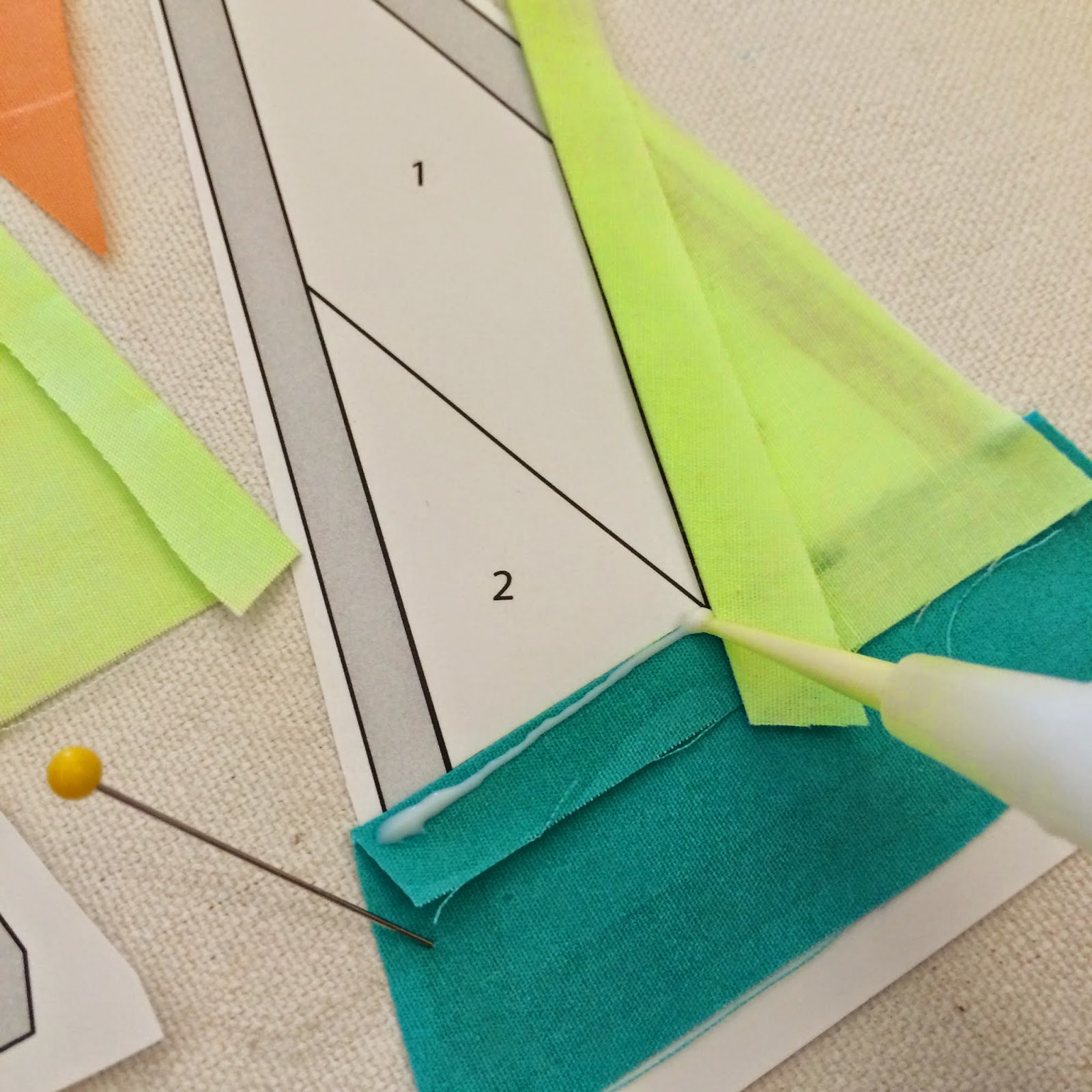 If you're not familiar with Paperless Paper Piecing, don't worry! I'll walk you through it, step by step, and I have another great post that walks you through the basics. In Paperless Paper Piecing, the assembly of the block, or unit, is done in a similar layering fashion as paper piecing, but, instead of sewing one piece at a time, all of the pieces are layered and glue basted in place, then sewn together. It's amazing and wonderful! I know this information may seem very extensive, but very detailed instructions are important to me. I don't want to skip a single step. The technique is simple, but as with anything new, it takes giving it a try to really "get it". Are you ready? Let's get started.