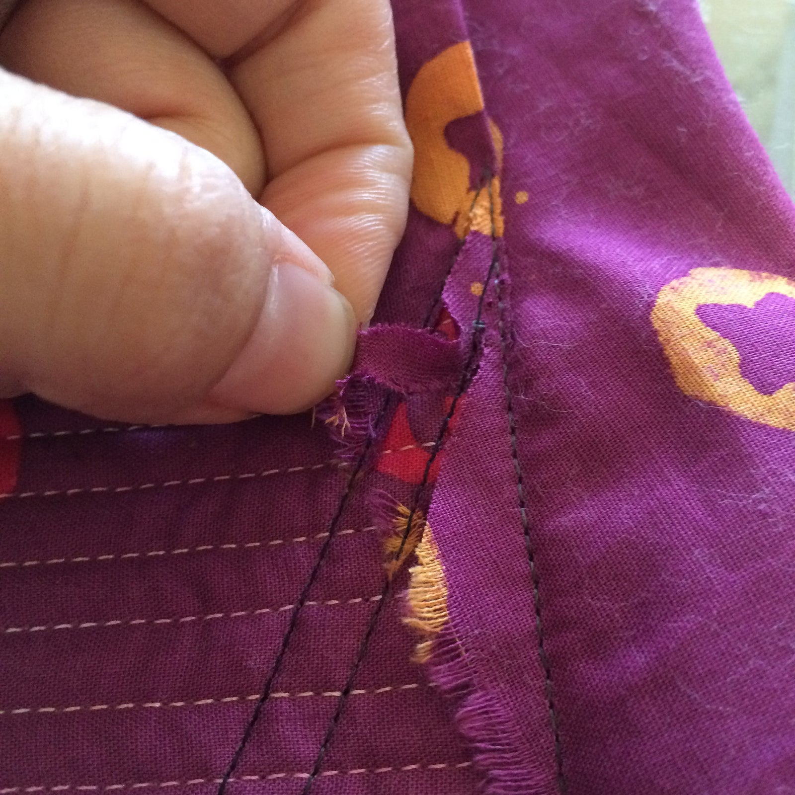 Snip your fabric as needed to release it from the stitches. Cutting the fabric close to the quilting will allow it to pull away quite easily.